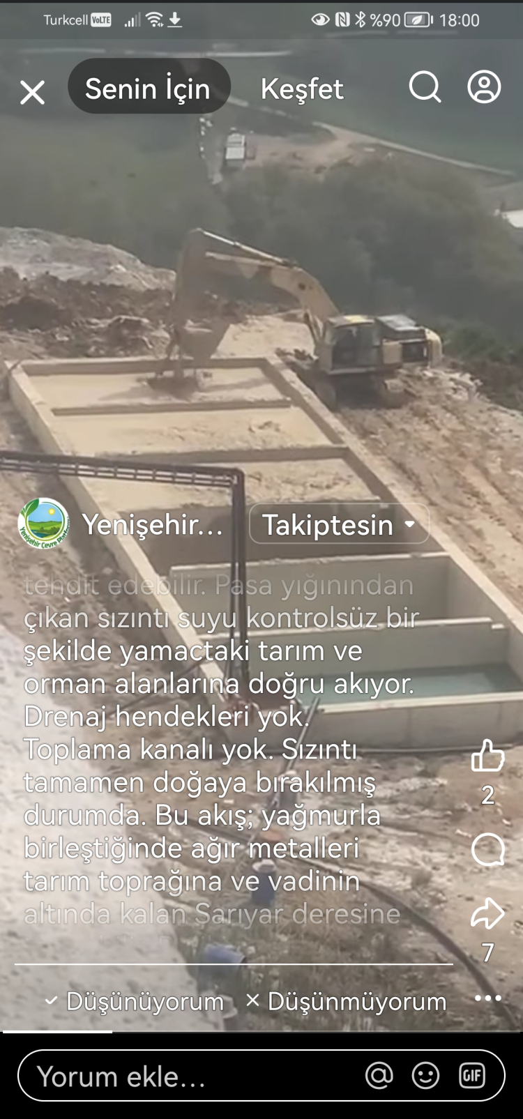 O sızıntı suyu yalnızca bir yamaca değil; Yenişehir’in verimli ovasına, tarımına, geleceğine doğru akıyor.